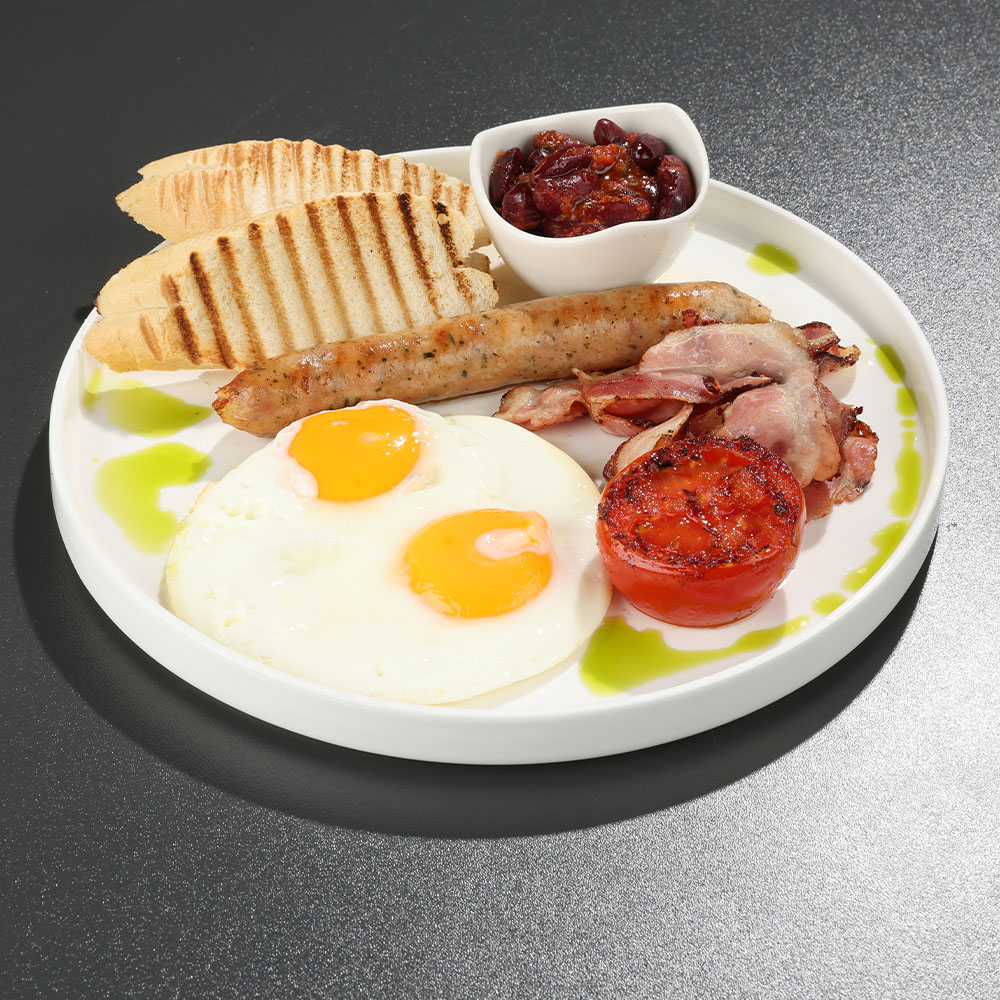 bacon, ouă, cârnăciori, roșii, fasole 300 g