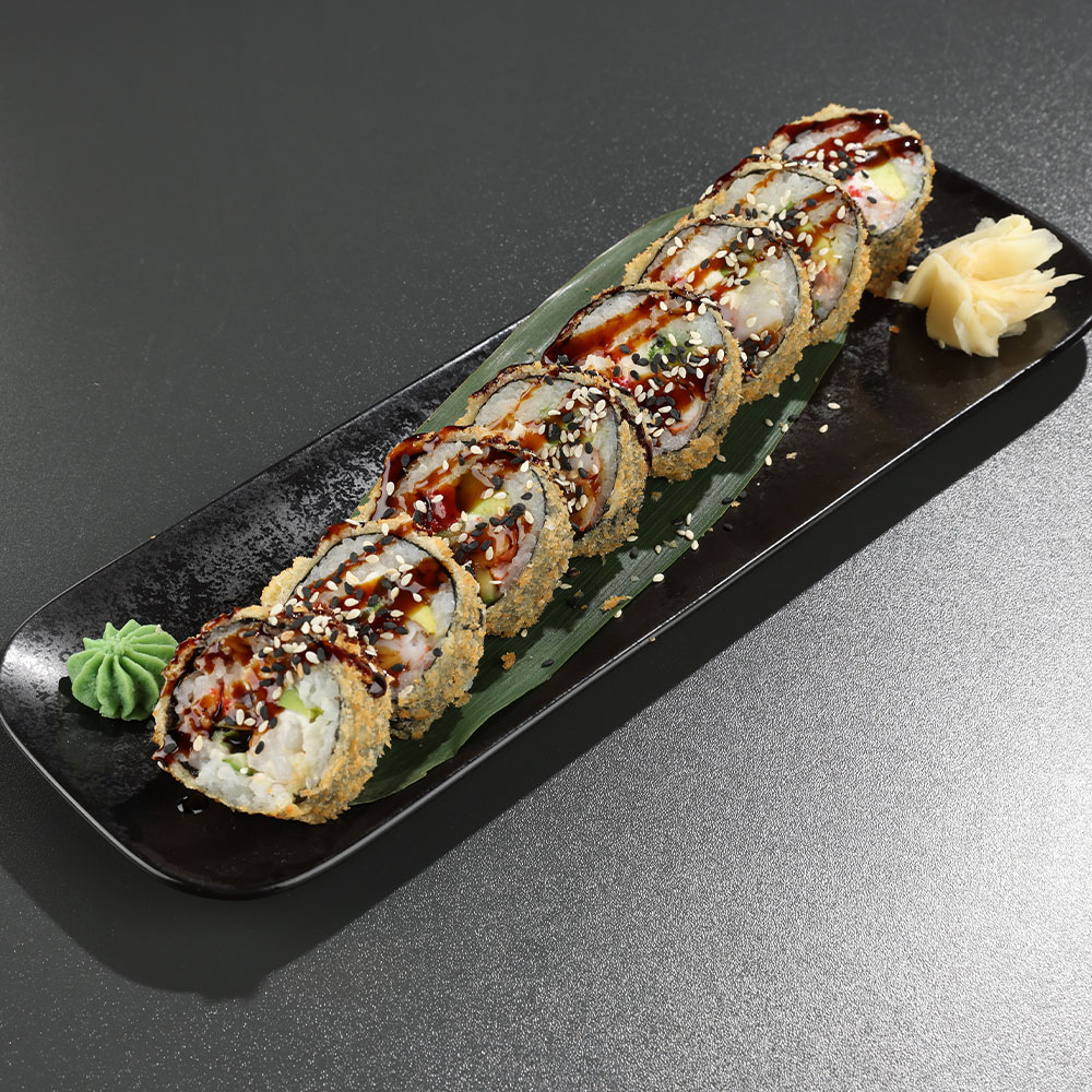 orez, creveți, cremă de brânză, maioneză japoneză, avocado, castraveți, alge nori, tobiko, susan, sos unagi 290 g